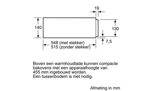 - De warmhoudlade kan afzonderlijk worden ingebouwd en kan worden gecombineerd met een klassieke oven of een compact toestel van 45 cm.