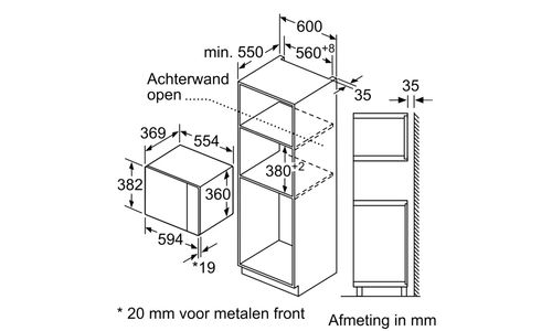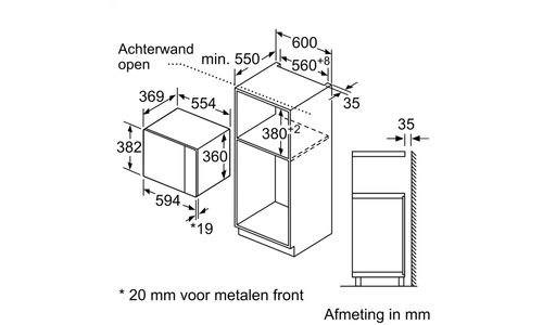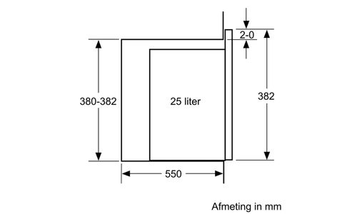 ++ Nishoogte (minimaal): 38 cm ++ Inhoud: 25 Liter ++ Vermogen microgolf: 900 W ++