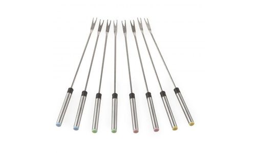 • 8 roestvrijstalen vorkjes met kleurmarkeringen