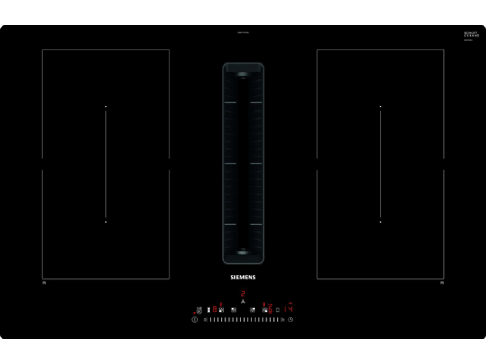Kookplaat iQ500 Inductie-geïntegreerde ventilatie 80 cm, combiInduction, 4 zones, mono touchSlider, BLDC-technologie Zonder kader B