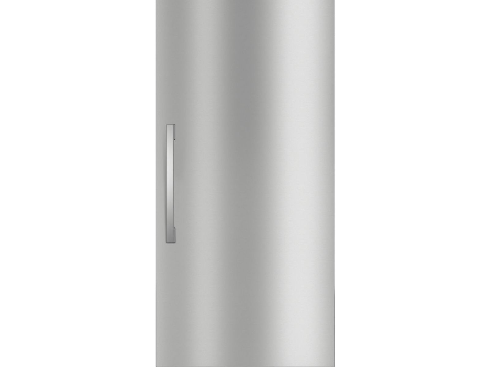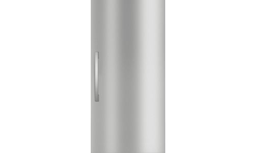 Roestvrijstalen frontpaneel voor een harmonieuze integratie van koel- en diepvrieskasten in uw keuken.