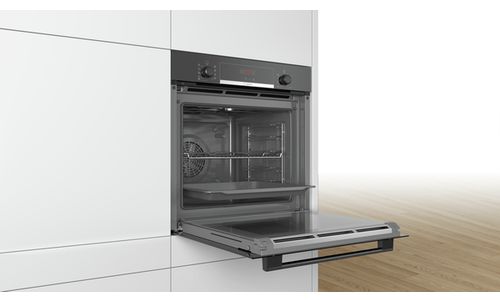 Oven Serie 4 Multifunctie 60 cm, 5 verwarmingswijzen, pyrolyse, AutoPilot10, halogeenverlichting, verzinkbare draaiknoppen, rode display Zwart - A