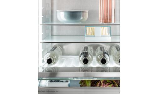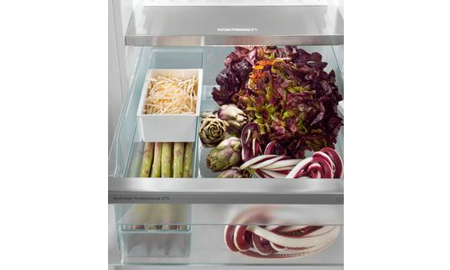 Deze koel/vriescombinatie biedt alles. Het robuuste SmartSteel interieur met LED wandpanelen en Ambient verlichting heeft een eerste klas uitstraling. De deur met SoftSystem sluit altijd zacht. In de BioFresh Professional laden op SoftTelescopic rails bewaart u groenten en fruit tot 3x langer. De HydroBreeze geeft een frisse nevel over de groente en fruit als dauw over het land. Het NoFrost vriesdeel met LED verlichting hoeft u nooit meer te ontdooien. De IceMaker zorgt voor voldoende voorraad ijsblokjes.