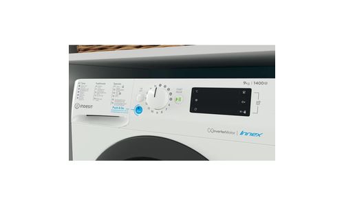Kenmerken van deze Indesit vrijstaande wasmachine - voorlader: een royale capaciteit van 9,0 kg. Energie-efficiëntieklasse B. Een zwiersnelheid van 1400 toeren per minuut. Kleur wit.