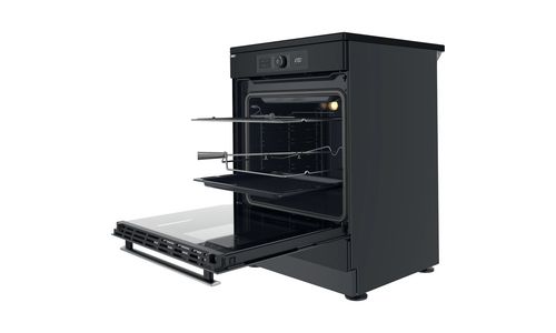 Kenmerken van dit Whirlpool vrijstaande 60x60 fornuis: kleur zwart. Zelfreinigende technologie gebruikt een cyclus met hoge temperatuur om voedselresten tot as te verbranden, die vervolgens gemakkelijk met een spons kan worden weggeveegd. Elektrisch fornuis. 4 inductiezones. Multifunctionele kookmethode.