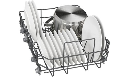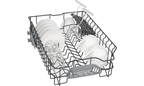 De nieuwe varioLade Plus is extreem verstelbaar, waardoor je altijd ruimte hebt voor je vaat. Met de zijdelen verstel je de hoogte gemakkelijk. En met de beweegbare, omklapbare pinnen in de middensectie, past er nog meer in de korf. Dat is bijvoorbeeld perfect als je messen met een breed handvat wilt wassen. Of opscheplepels en kleine thee- en koffiekopjes.