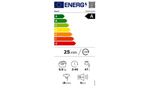 Zuinig omspringen met energie? Dat doe je met een wasmachine met energielabel A. Het energielabel geeft een overzicht van het energie- en waterverbruik van het toestel, samen met het vermogen en het geluidsniveau. De Bosch-wasmachines met energielabel A besparen energie én leveren uitstekende wasresultaten.