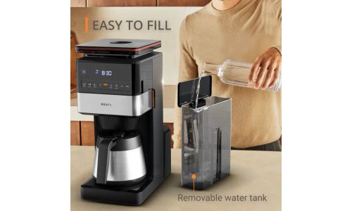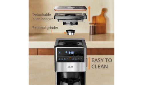 - Filterkoffiezetapparaat met uitneembare bonencontainer en externe molen voor eenvoudig schoonmaken