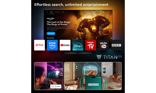Het nieuwe Titan OS biedt razendsnelle toegang tot je favoriete apps en streamingdiensten. Dankzij de intuïtieve interface navigeer je eenvoudig door content, instellingen en smart functies zonder vertraging.