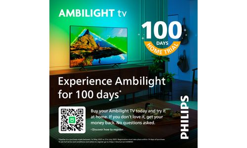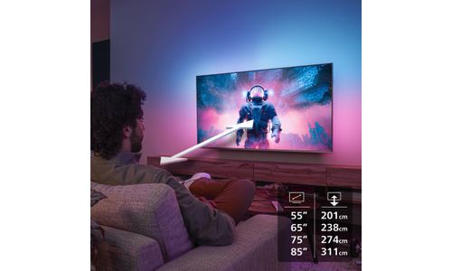Het unieke Ambilight projecteert het beeld via LED’s rondom de TV op de muur, waardoor je kamer onderdeel wordt van de actie en sfeer van je favoriete content.