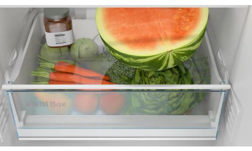 Ongelijke koeling in je koelkast kan een grote impact hebben op de smaak en levensduur van je voedsel. Dankzij de blinkende achterwand met MultiAirflow, worden vocht en temperatuur gelijkmatig verdeeld in de koelingsruimte, van de schappen in de deur tot de achterste hoeken, waardoor je je voedsel langer kan bewaren.