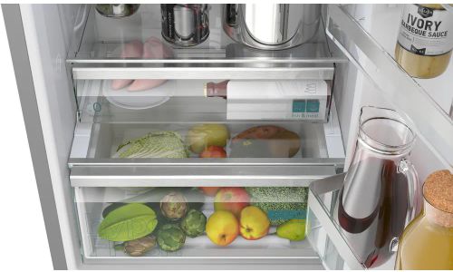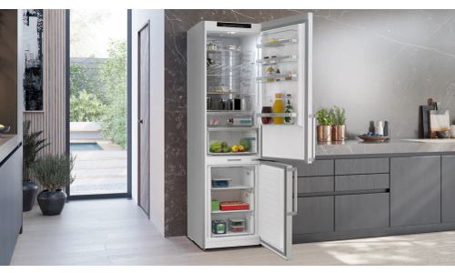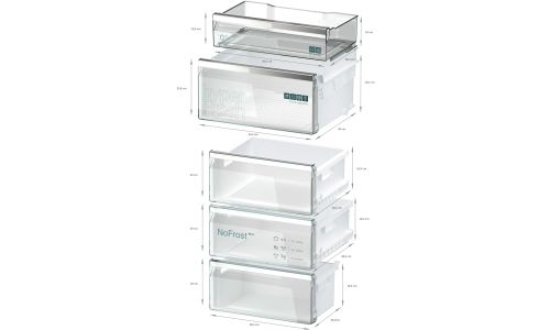Dankzij de Total noFrost-technologie hoef je je geen zorgen meer te maken over het ontdooien van je vriezer. Total noFrost onttrekt vocht uit de lucht, waardoor er geen ijsvorming optreedt op de wanden en je etenswaren. Dit geldt ook voor de koelkast. Vocht en ijs zetten niet meer af op de achterwand, zodat je boodschappen goed bewaard blijven. Dit bespaart je niet alleen de moeite van het ontdooien, maar maakt je toestel ook energiezuiniger.