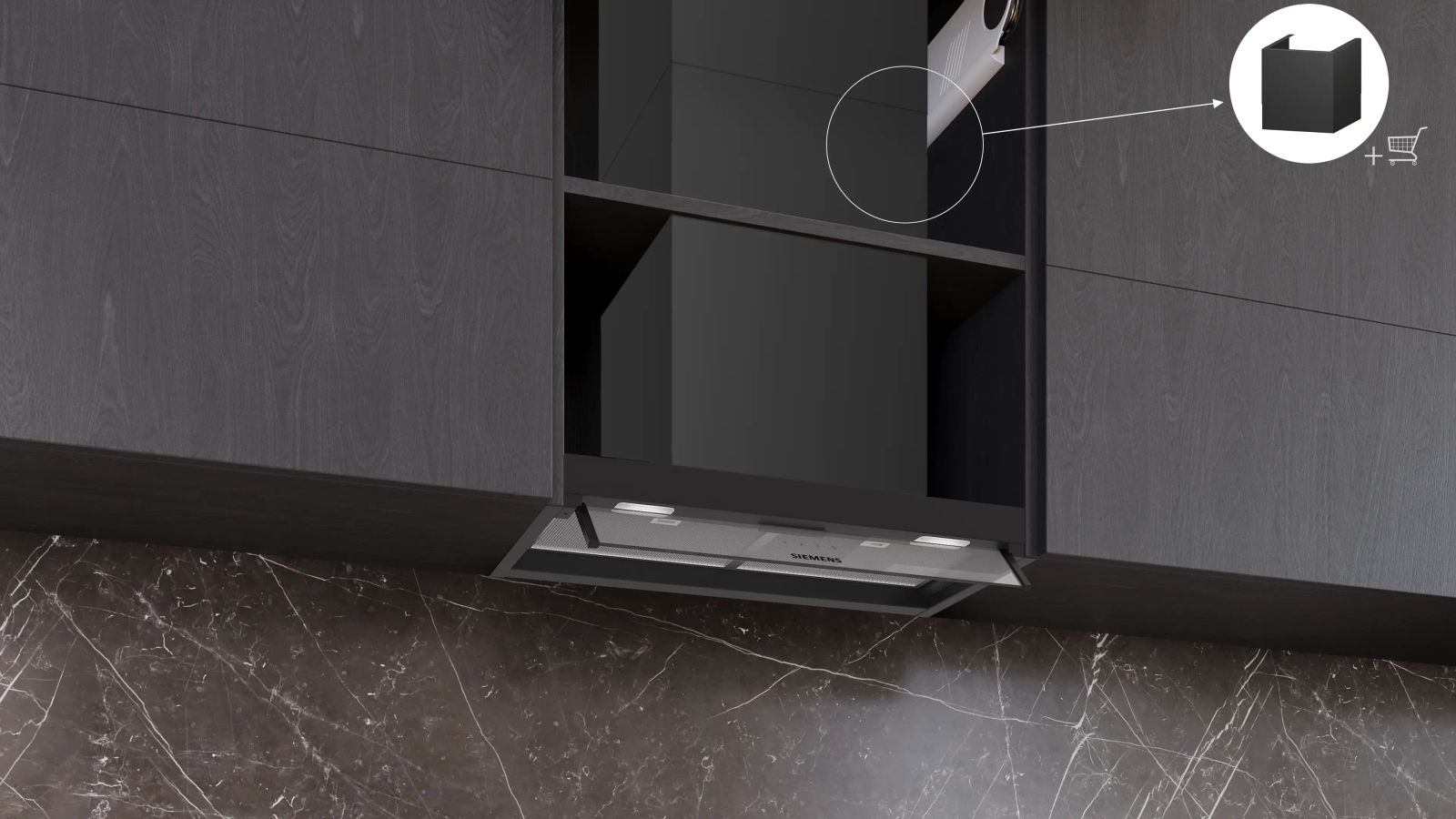 Dampkap IQ300 Geïntegreerde design schouwdampkap 60 cm, matt zwart, 3 standen, 582 m3/h, 65 dB, druktoetsen, 2 PC, LM2-01_LED_1,5W, , klasse B Mat zwart B