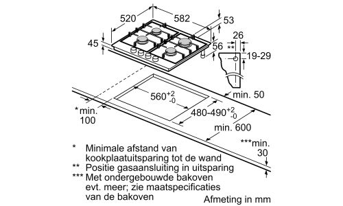 ++ Type kookplaat: Gas ++ Breedte: 60 cm ++ Aantal kookzones: 4 ++