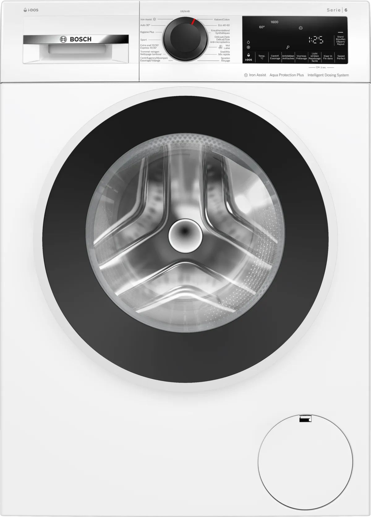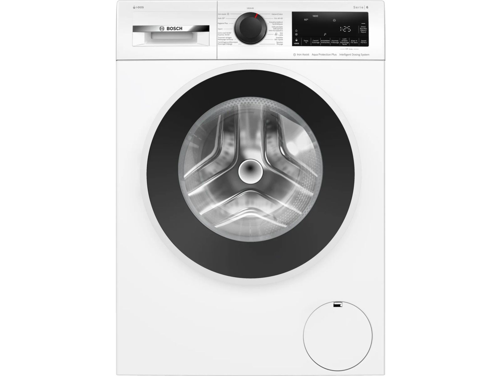Wasmachine Serie 6 Vrijstaand Klasse A, 9,0 kg, 1.600 tr/min, i-DOS, Antivlekken, Iron Assist, groot LED display touch buttons, waveDrum, Aqua Protection Plus, 74 dB, BLDC motor met 10 jaar motorgarantie, Line 1, white-black grey Wit A