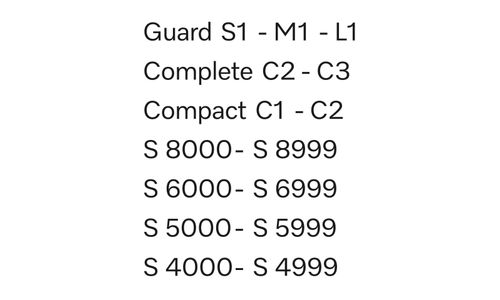 - bijv. voor Guard S1, M1, L1, Complete C2, C3 en Compact C1, C2
