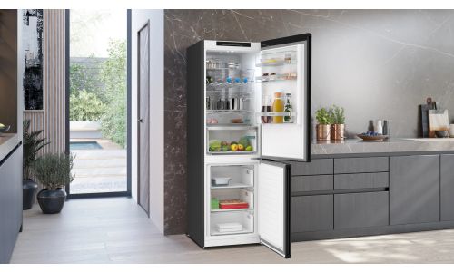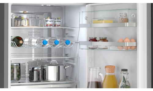 Dankzij de Total noFrost-technologie hoef je je geen zorgen meer te maken over het ontdooien van je vriezer. Total noFrost onttrekt vocht uit de lucht, waardoor er geen ijsvorming optreedt op de wanden en je etenswaren. Dit geldt ook voor de koelkast. Vocht en ijs zetten niet meer af op de achterwand, zodat je boodschappen goed bewaard blijven. Dit bespaart je niet alleen de moeite van het ontdooien, maar maakt je toestel ook energiezuiniger.