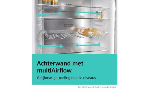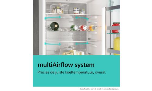 Zijn sommige niveaus in je koelkast kouder dan andere? Onze metalen achterwand met multiAirflow-systeem biedt een oplossing voor dit probleem. De koele lucht wordt gelijkmatig gecirculeerd om een constante temperatuur op alle niveaus te behouden. Zo koel je al je voedsel aan een razendsnel tempo waardoor alles lekker vers blijft.
